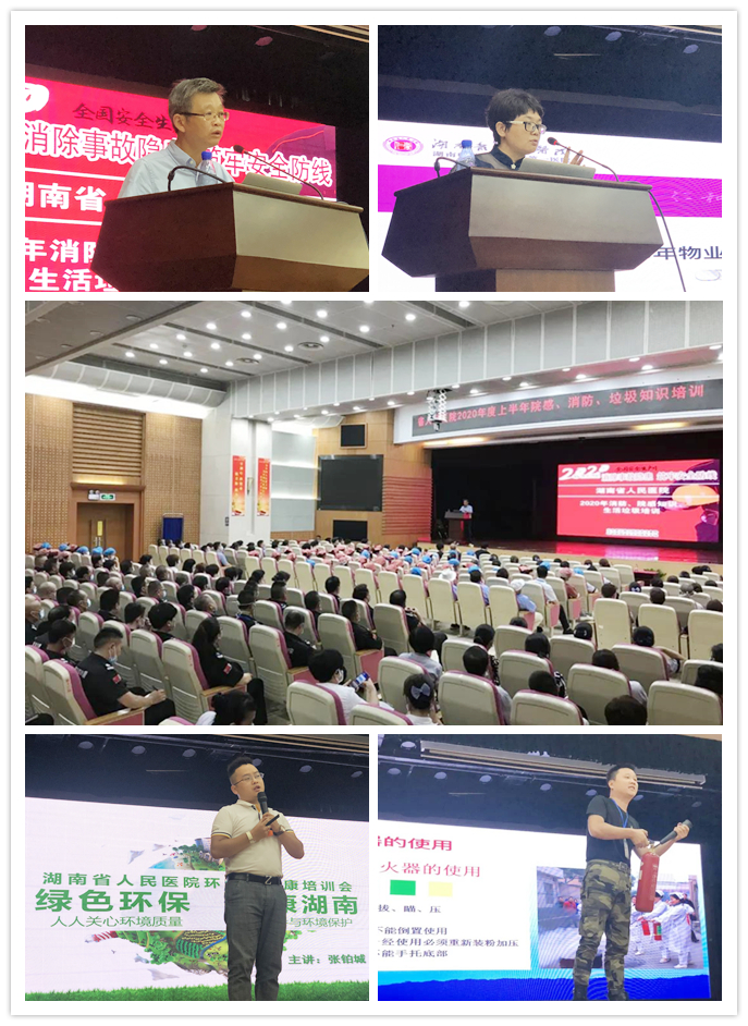 为积极响应省卫健委开展2020年“安全生产月”和“安全生产三湘行”的活动要求,增强全员安全意识、树立安全发展理念、推进“平安捷克论坛 ”建设,7月14日,后勤服务部与保卫科、院感科联合举办了“省人医2020年上半年院感、消防、垃圾分类的知识培训”,副院长谢爱明出席会议,三个院区的食堂、物业和保安人员近三百人参加培训。