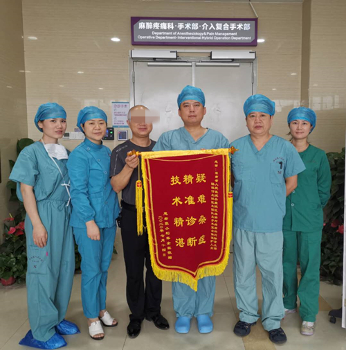 患者家属为医护人员送上锦旗表示感谢