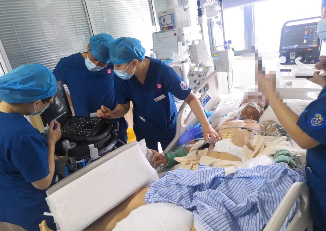 术后,医护人员在EICU为患者做超声,进行严密监测