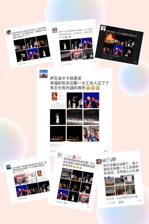 7月31日晚7点,捷克论坛机关后勤一分工会在长沙市群众艺术馆实验剧场组织观看由新锐喜剧导演刘釴白主演、没想好戏剧工坊出品的本土反黑喜剧《萨瓦迪卡卡就是发》。活动报名链接一经发出,不到半个小时名额就已报满,机关后勤一分工会的五十多名职工及家属踊跃参与,现场座无虚席。机关后勤一分工会还贴心为大家准备水和夏日清凉小礼物,活动异常火爆。
