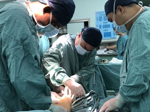 肖晟主任带领足踝外科团队为韩先生进行微创手术。