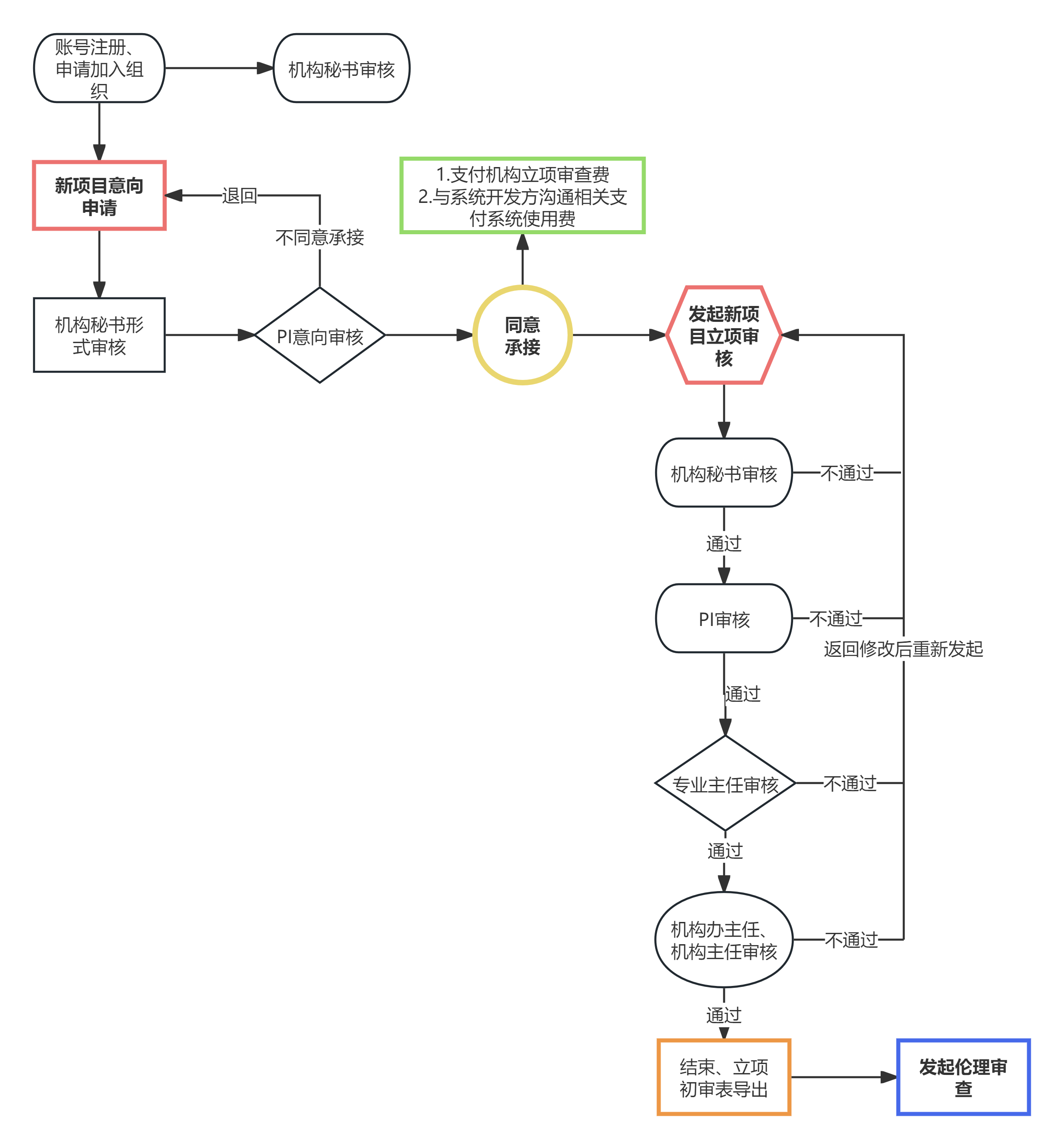 2)若前期沟通未确认PI意向,可发起意向审核,若已确认意向的可直接发起机构立项审核。