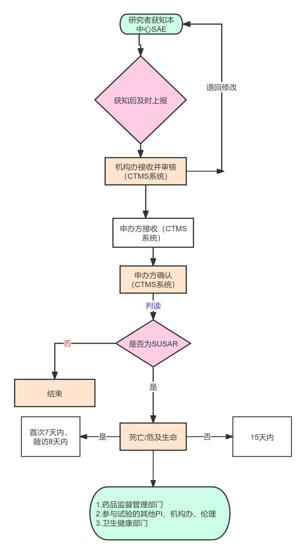 本中心SAE上报:除试验方案或者其他文件(如研究者手册)中规定不需立即报告的严重不良事件外,研究者应当在首次获知SAE后立即完成以下报告: