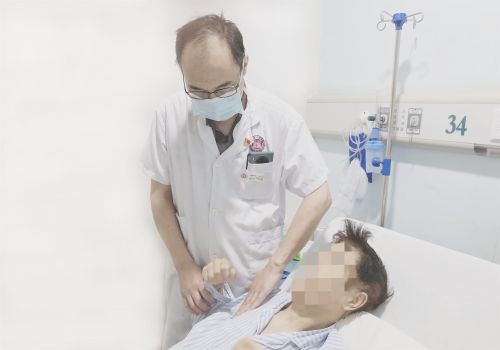 周文武主任医师查看患者术后恢复情况。
