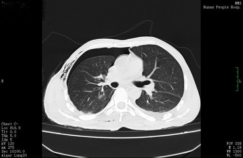 术后ct显示:右肺清晰可见。
