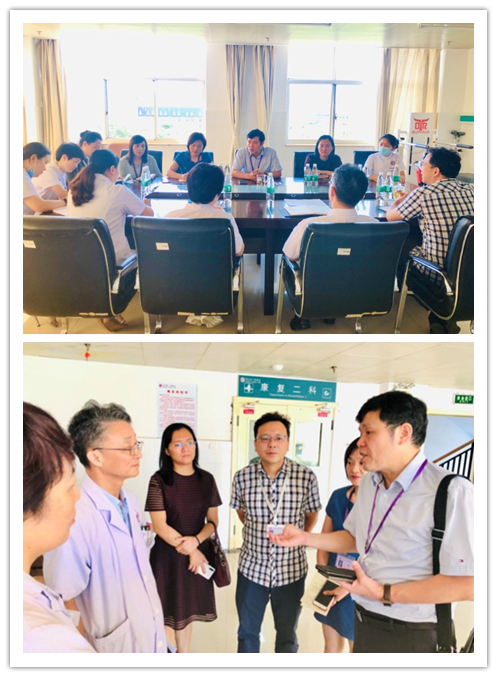 8月14日上午,湖南师范大学临床医学院院长蒋波及教学部主任胡进辉、常清明一行来马王堆院区康复医学科就与湖南医药学院联合办学进行现场调研。马王堆院区区执行院长丁健、康复医学科科主任、护士长、治疗师长、综合办等负责人参与了陪同。