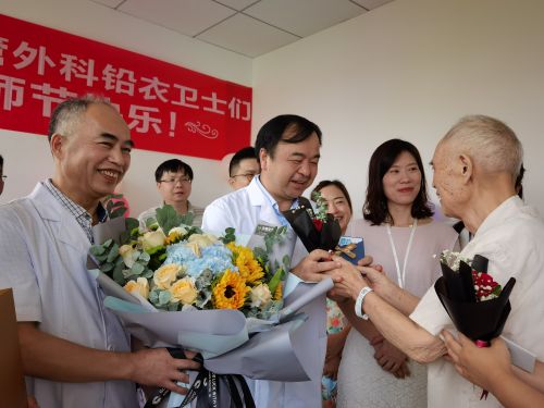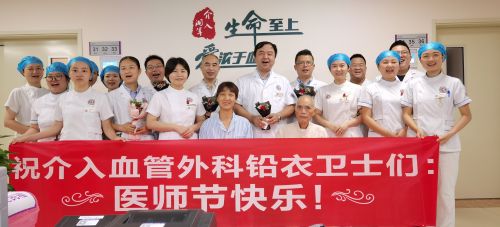 清晨,“介入天使”们准备了爱心早餐,让每位“铅衣卫士”尽情嗦了一碗热乎乎的米粉;病友胡爷爷手捧鲜花,把亲手写的贺卡献给医生们;在常务副院长向华带领下,各职能部门领导纷纷送上节日的祝福;病友代表推着香气四溢的蛋糕进来……大家一同享受温馨、美好的时光!