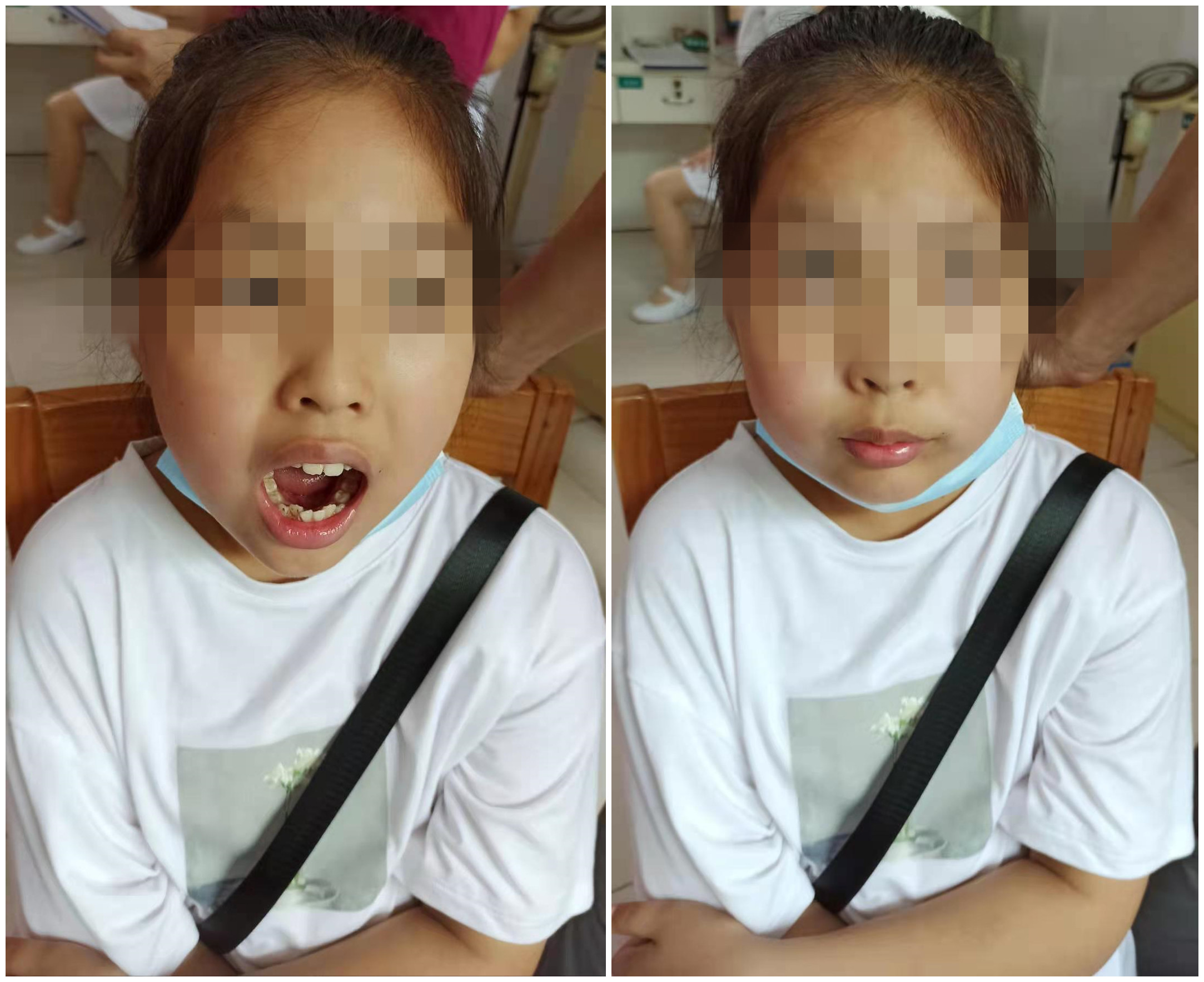 耳鼻咽喉头颈外三科王宁主任介绍,雯雯的牙齿不整齐有龅牙,是因腺样体肥大引起。腺样体肥大堵塞了一部分鼻咽呼吸道,使呼吸道长期处于狭窄状态,只有张着嘴呼吸才感到顺畅,长期张口呼吸易造成面骨发育障碍,易形成牙列不齐,上切牙突出等腺样体面容。