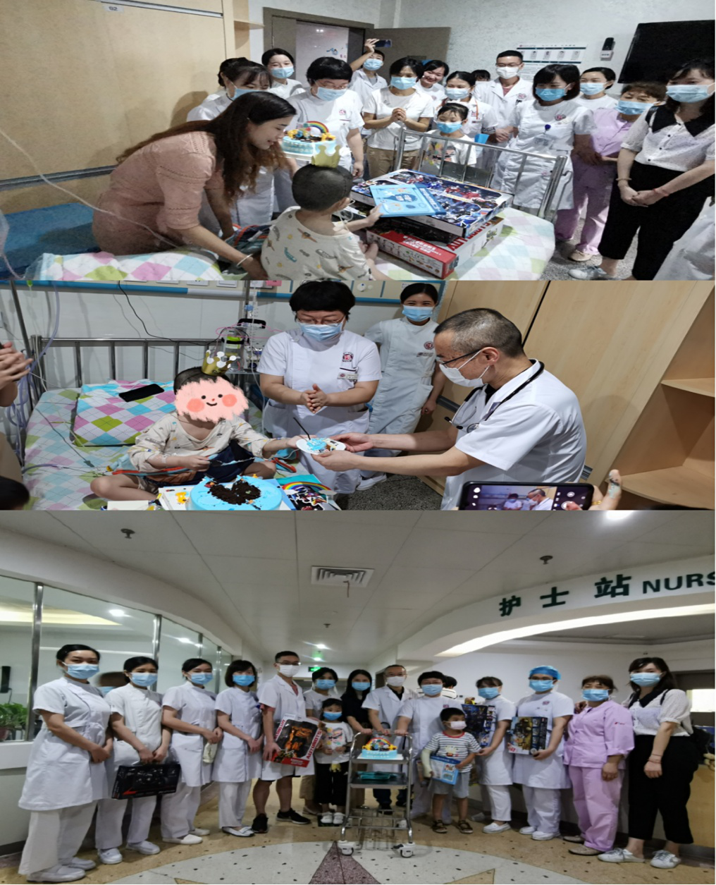 “祝你生日快乐……”9月6上午,儿童医学中心儿童外科病房里举办了一个特殊的生日会,儿童外科、普外二科医护人员与患儿爸爸妈妈一起同唱生日快乐歌,为多发肠瘘的患儿航航送上生日蛋糕和暖心祝福,航航收到这份特殊的生日礼物十分开心。