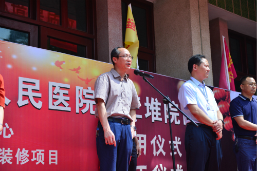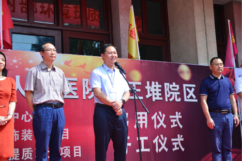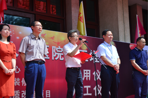 随后,党委书记唐建明宣布消毒供应中心启用,大礼堂装饰装修、道路交通提质改造项目开工正式开工。