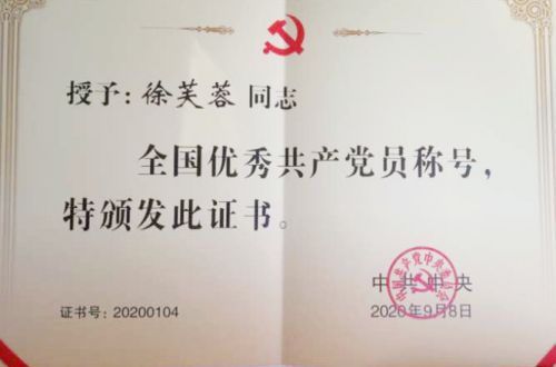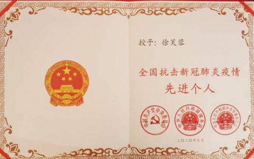 徐芙蓉荣获全国抗击新冠肺炎疫情先进个人、全国优秀共产党员两项殊荣。