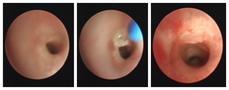纤支镜检查诊断为声门下腔狭窄及术中气道介入治疗下摄取图片