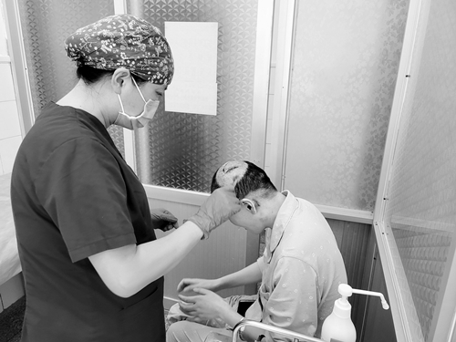 家住长沙的62岁王阿姨因为头部外伤入院治疗了将近一月。因各种原因,伤口恢复不理想。于是,管床医生向王阿姨推荐了急诊二科伤口治疗师余玲玲。通过余玲玲四次细致专业的处理后,王阿姨伤口恢复良好,水肿消退,肉芽红润。