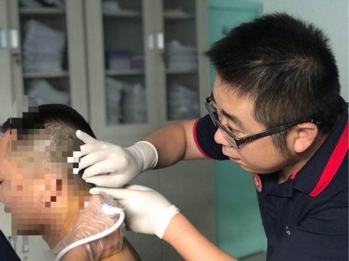 王靖主任为患者行针刺疗法。