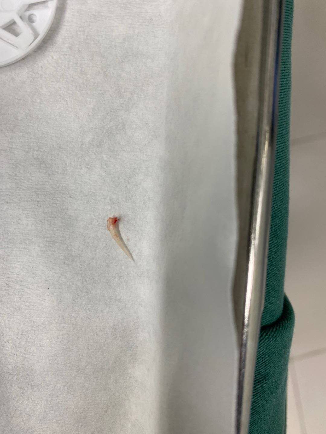 据接诊的李乐章副主任医师介绍,当时汤女士来捷克论坛 就诊时,通过喉镜及颈段食道CT检查诊断发现,她的食管可以看到鱼刺而且出现穿孔情况,立即予以急诊全麻下行食道镜下食道异物取出术,在食道内取出一约1.5cm的鱼刺,术中还发现有根鱼刺穿破食道进入颈部皮肤表层,再次行颈侧切开食管异物取出术,最后,成功将鱼刺取出。术中可以见到鱼刺已经穿过食道,并且到达食道侧的后壁,稍有不慎将会刺破大血管,随时都有大出血危及生命可能,所幸救治及时,目前,汤女士颈部伤口愈合可,能够自主进食。