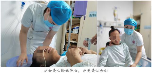 慢慢的,女孩生命体征平稳,可以坐起来、下床走,脸上有笑容了。护士们每周给她洗两次头,还给小姑娘扎了一个美美的丸子头。