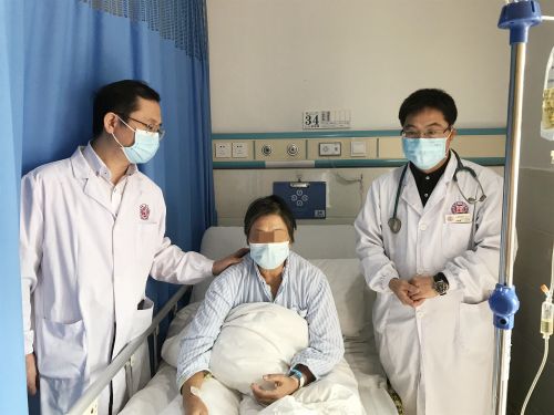 彭建强主任与潘宏伟主任查看患者术后情况。