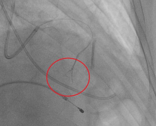 由于药物治疗欠佳,其他方法包括外科手术和介入治疗,但外科手术创伤大,死亡率高。传统介入方法使用无水酒精可有效消蚀肥大心肌,但易导致大面积心肌梗死及其他严重并发症。经心内科全科讨论,建议使用改良经皮室间隔栓塞术。该手术是通过微导管向间隔支内注入微粒球,精准可控地使局部肥厚的间隔心肌梗死、有效解除流出道梗阻。