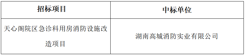 天心阁院区急诊科用房消防设施改造项目——招标结果公示