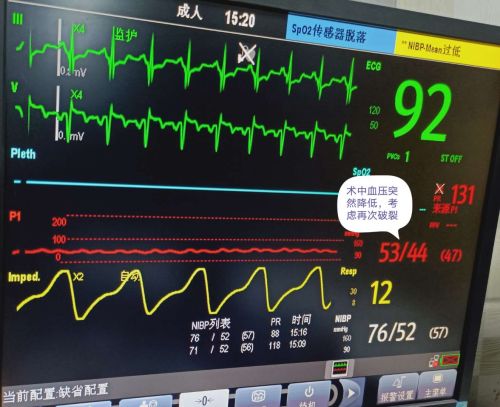 术中血压下降,考虑为动脉瘤再次破裂。