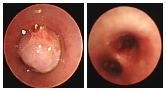 被被肿瘤完全遮挡的气道和术后畅通的气道