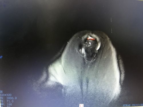 术前mri检查显示:右侧冈上肌肌腱1cm撕裂。