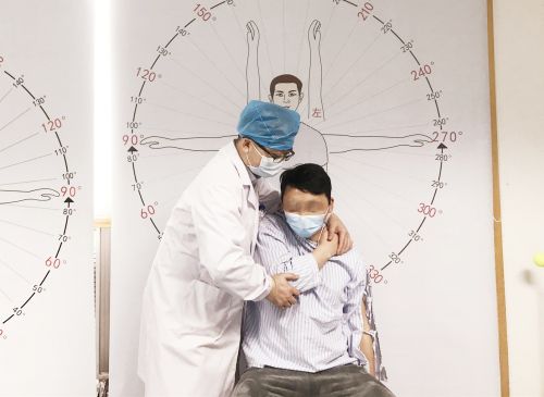 2021年1月25日,王靖主任团队为小陈施行右肩关节镜检、肩袖缝合、粘连松解、滑膜清理、肩峰下滑囊清理术,解决他右肩疼痛、活动受限的问题。副主任康复师王洪涛为小陈制定了一整套详细的康复计划,指导他进行术后康复训练。