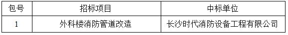 捷克论坛 马王堆院区外科楼消防管道改造项目(第二次)招标结果公示