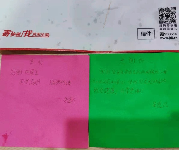 “谢谢张医生,在我生病的时候给了我好的治疗和关心,使我在短时间内恢复健康,非常感谢!”
