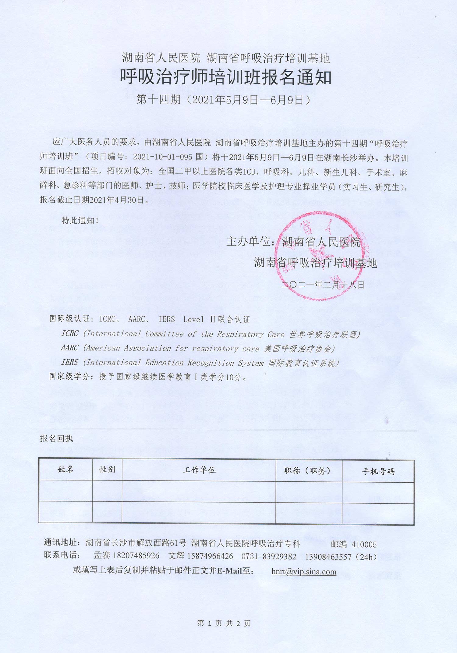 附件:2021第十四期呼吸治疗师培训班通知(盖章)