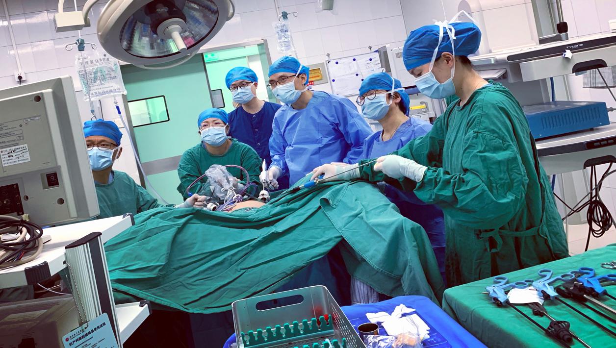 经过心内科、泌尿外科、胃肠外科、麻醉科、放射科、超声科等多位学科专家会诊,4月16日,妇产三科陈春燕主任、泌尿外四科杨科主任、胃肠外科谭浩翔主任、心内五科容志毅主任、麻醉二科魏来主任等组成的专家团队为张女士进行了多学科协作腹腔镜探查术,术前安置临时心脏起搏器,并放置双侧输尿管DJ管。术中发现张女士左附件肿块与直肠、乙状结肠及左侧输尿管、左侧盆壁、盆底致密粘连。