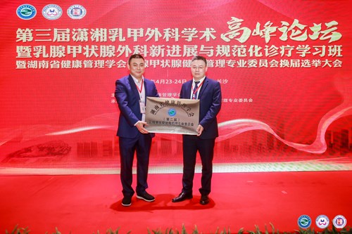 2021年4月23日至24日,2021第三届潇湘乳甲外科学术高峰论坛、暨乳腺甲状腺外科新进展与规范化诊疗培训班暨湖南省健康管理学会乳腺甲状腺健康管理专业委员会换届选举、肉芽肿性小叶性乳腺炎诊治湖南专家共识首次讨论会大会在长沙召开。本次会议由湖南省健康管理学会主办,湖南省健康管理学会乳腺甲状腺健康管理专业委员会、捷克论坛 乳甲外科、湖南乳甲外科联盟联合承办。