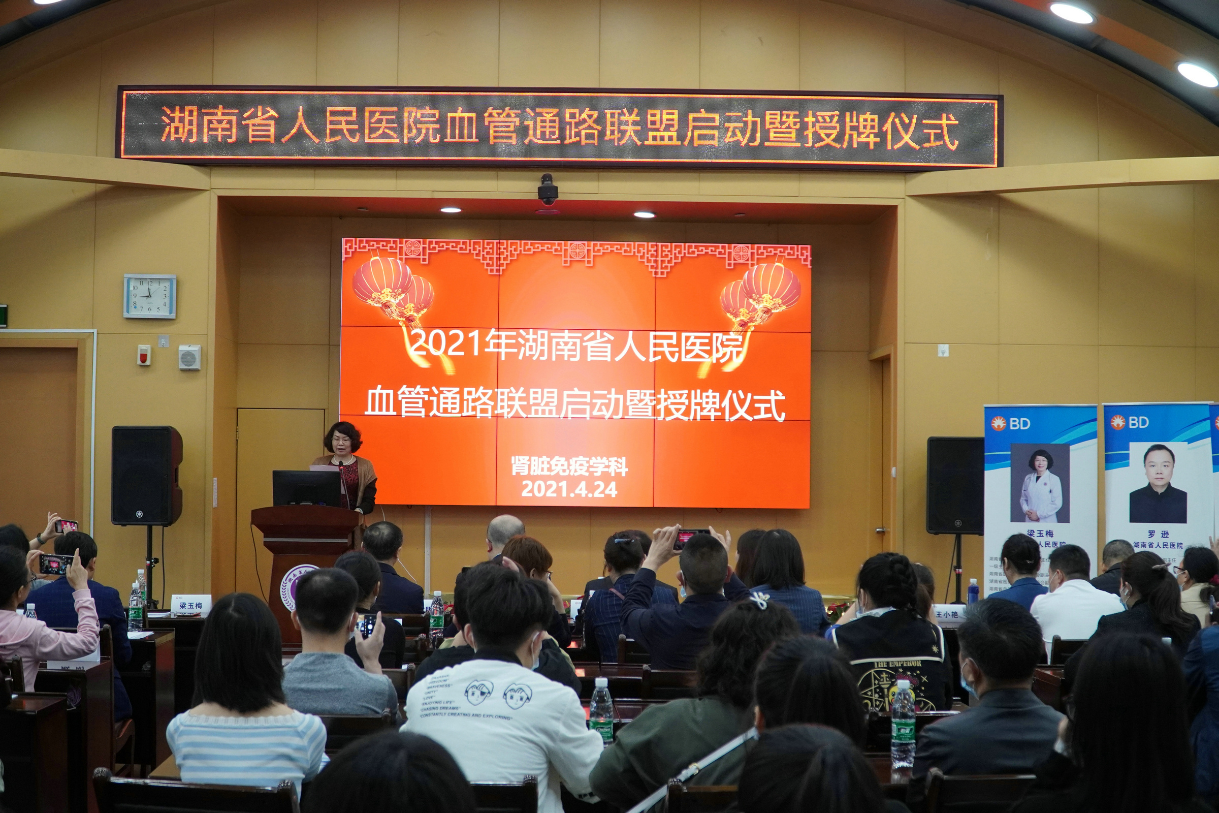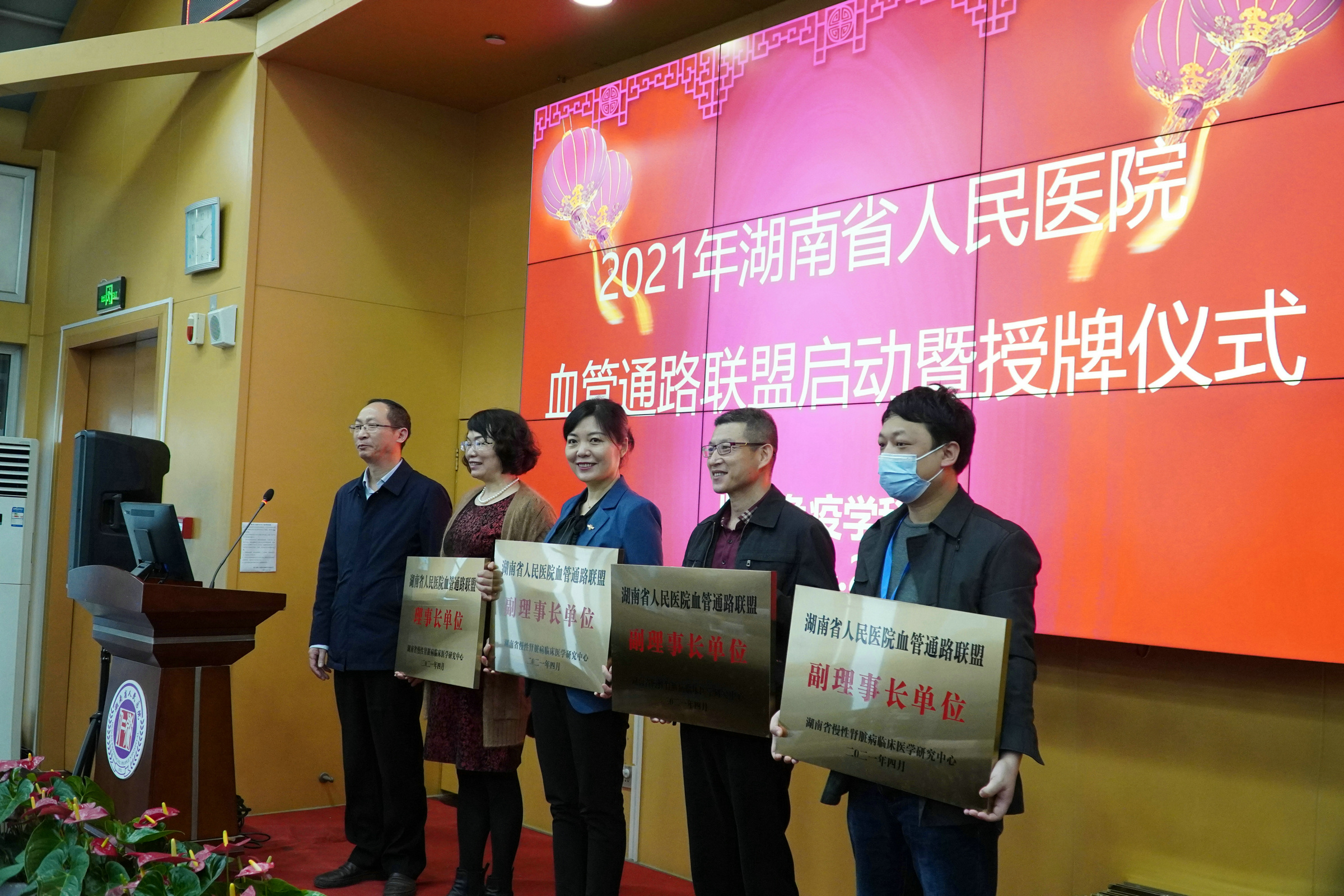 为进一步推广技术,造福患者,肾脏内科在社会医学部的指导下,依托“湖南省慢性肾脏病临床研究中心”平台,成立捷克论坛 血管通路联盟,肾脏内科为理事长单位,邵阳市中心捷克论坛 、衡阳市中心捷克论坛 、永州中心捷克论坛 为副理事长单位,祁东县人民捷克论坛 、澧县人民捷克论坛 等24家单位为理事单位,2021年4月24日,联盟成立大会暨授牌仪式在捷克论坛召开。