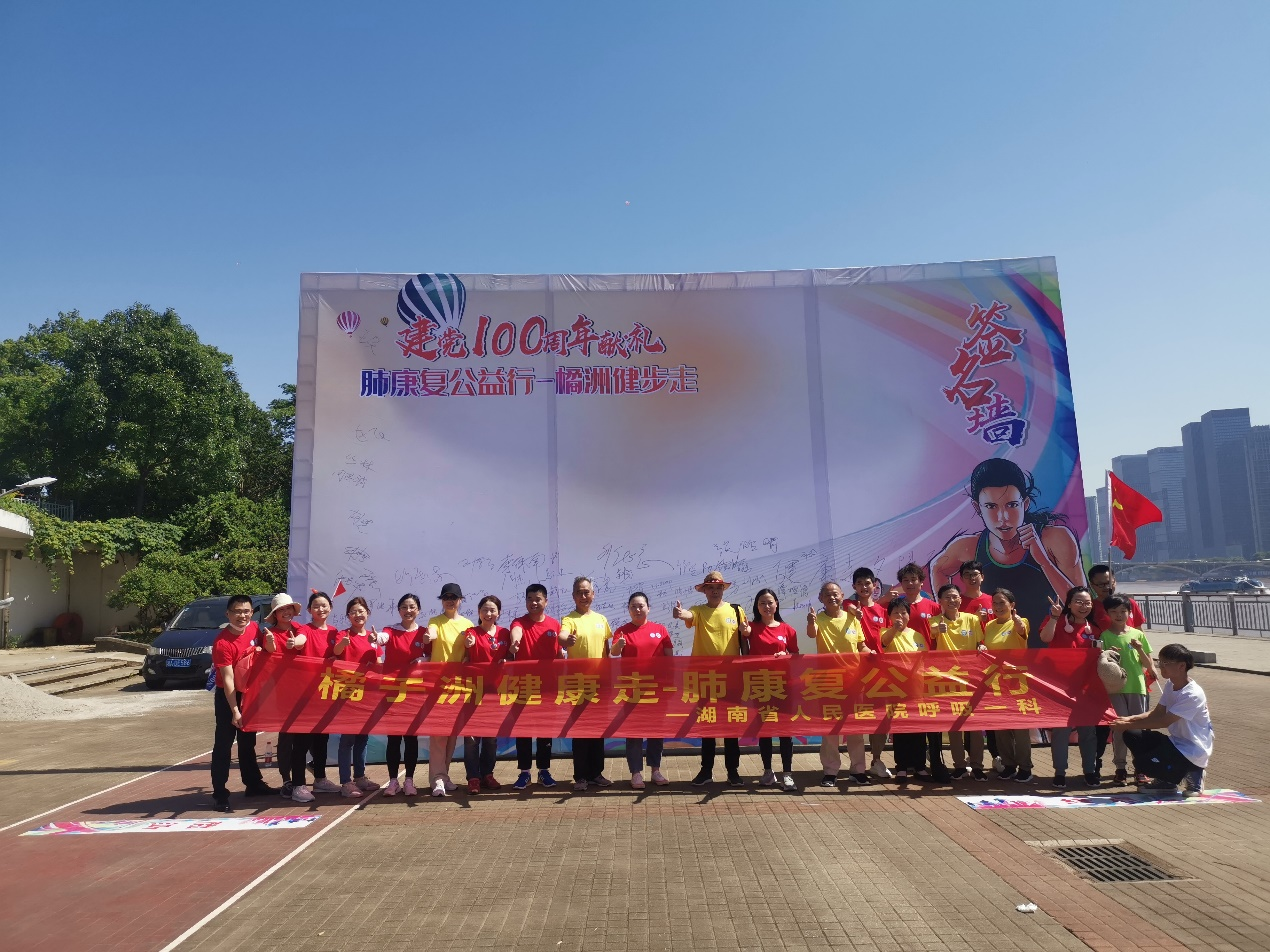 6月6日上午,呼吸一科组织开展的“橘子洲健康走—肺康复公益行”活动在长沙橘洲公园举办,目的在于贯彻健康中国战略,倡导慢性肺病患者科学康复,以活动献礼建党100周年,医生、患者、家属50余人参加了活动。