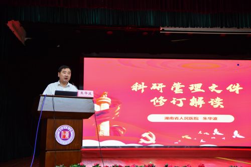 院党委委员、临床医学院党委书记朱华波解读新的科研管理文件。
