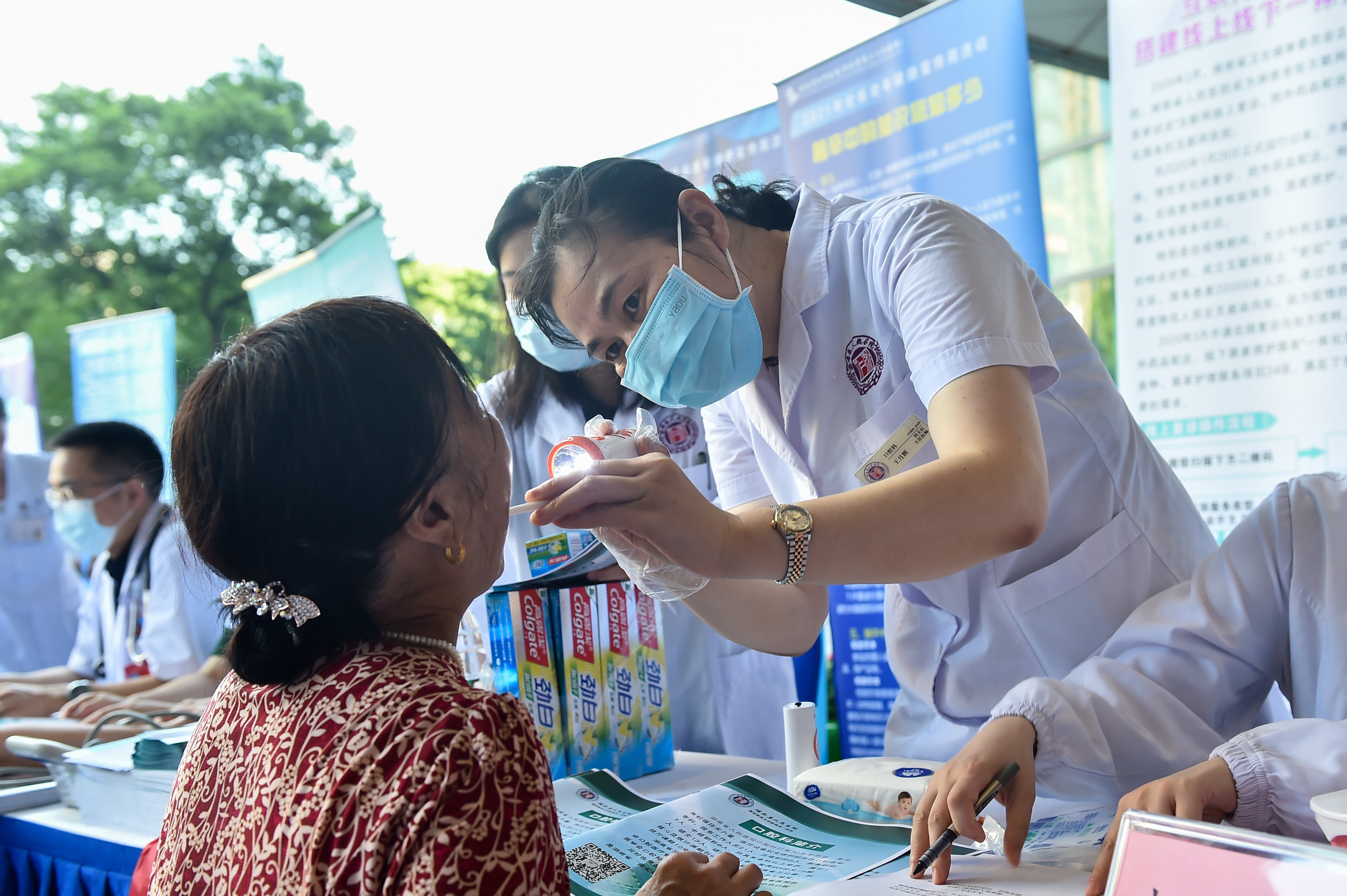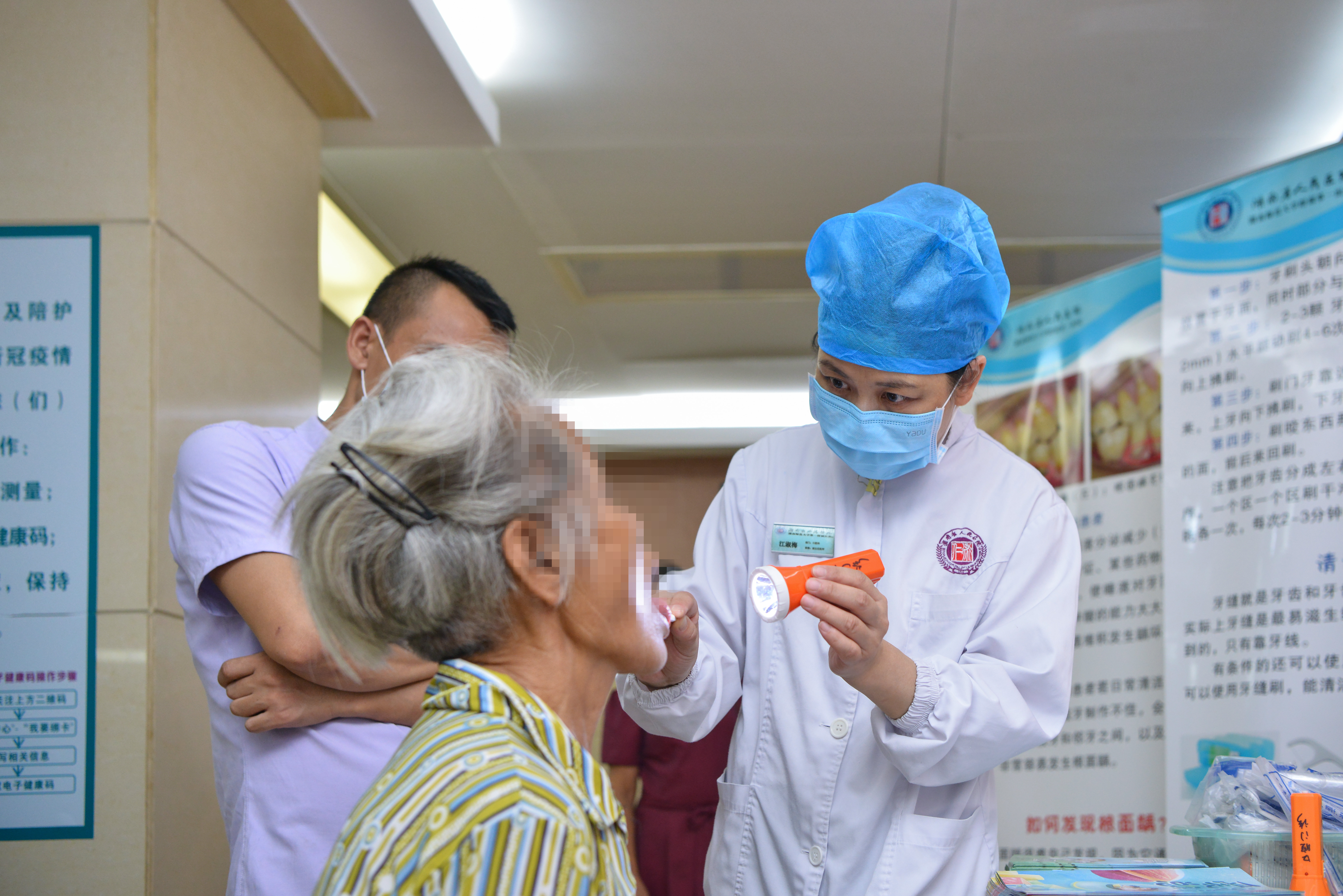 口腔一科主任王月辉带领医护团队现场为老年人进行口腔健康检查,老年医学中心专家为老年人进行义诊义治和疾病知识普及。