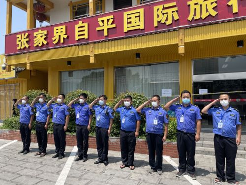 身着制服的城管队员在高速出口列队向我们敬礼。