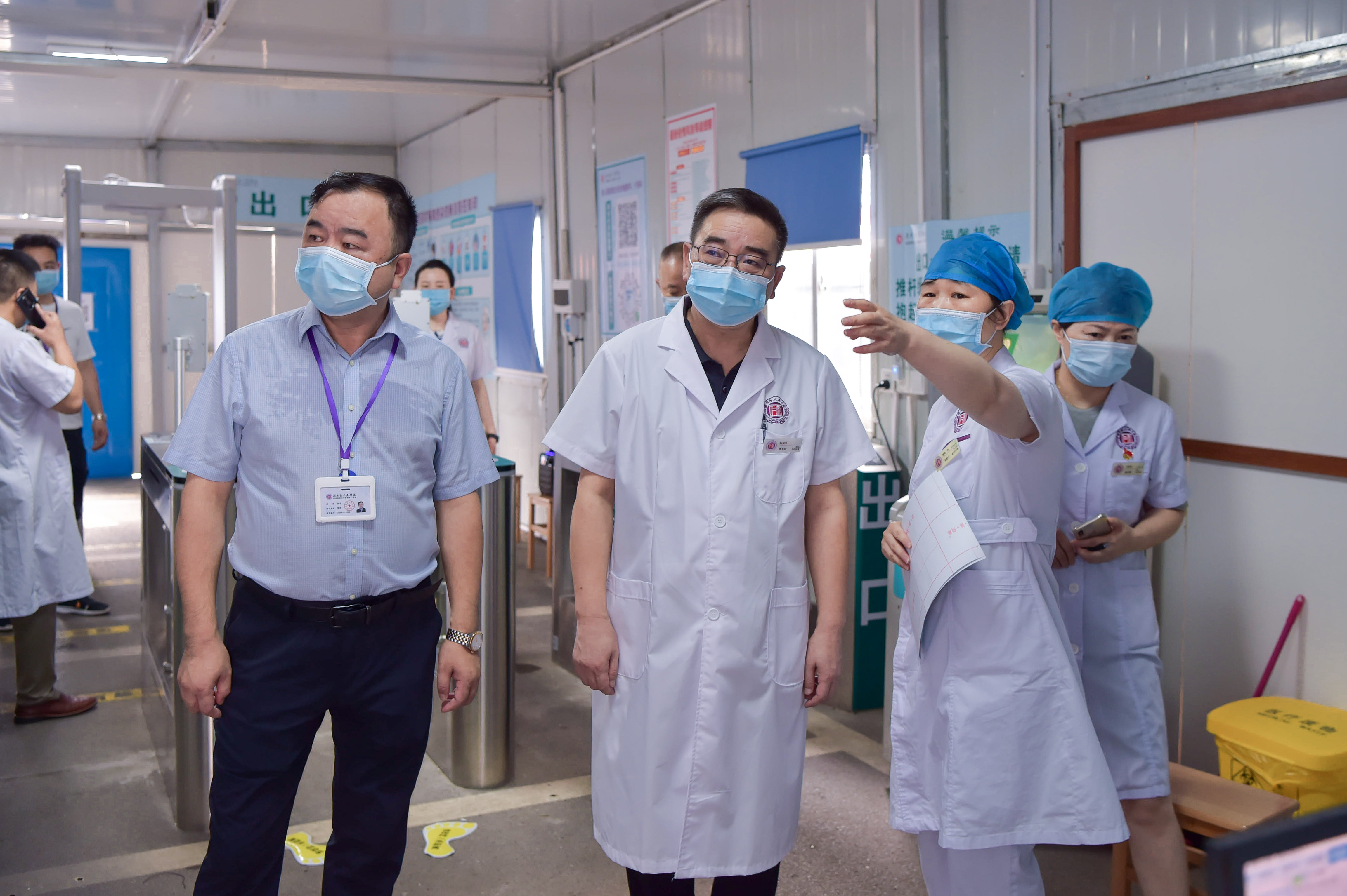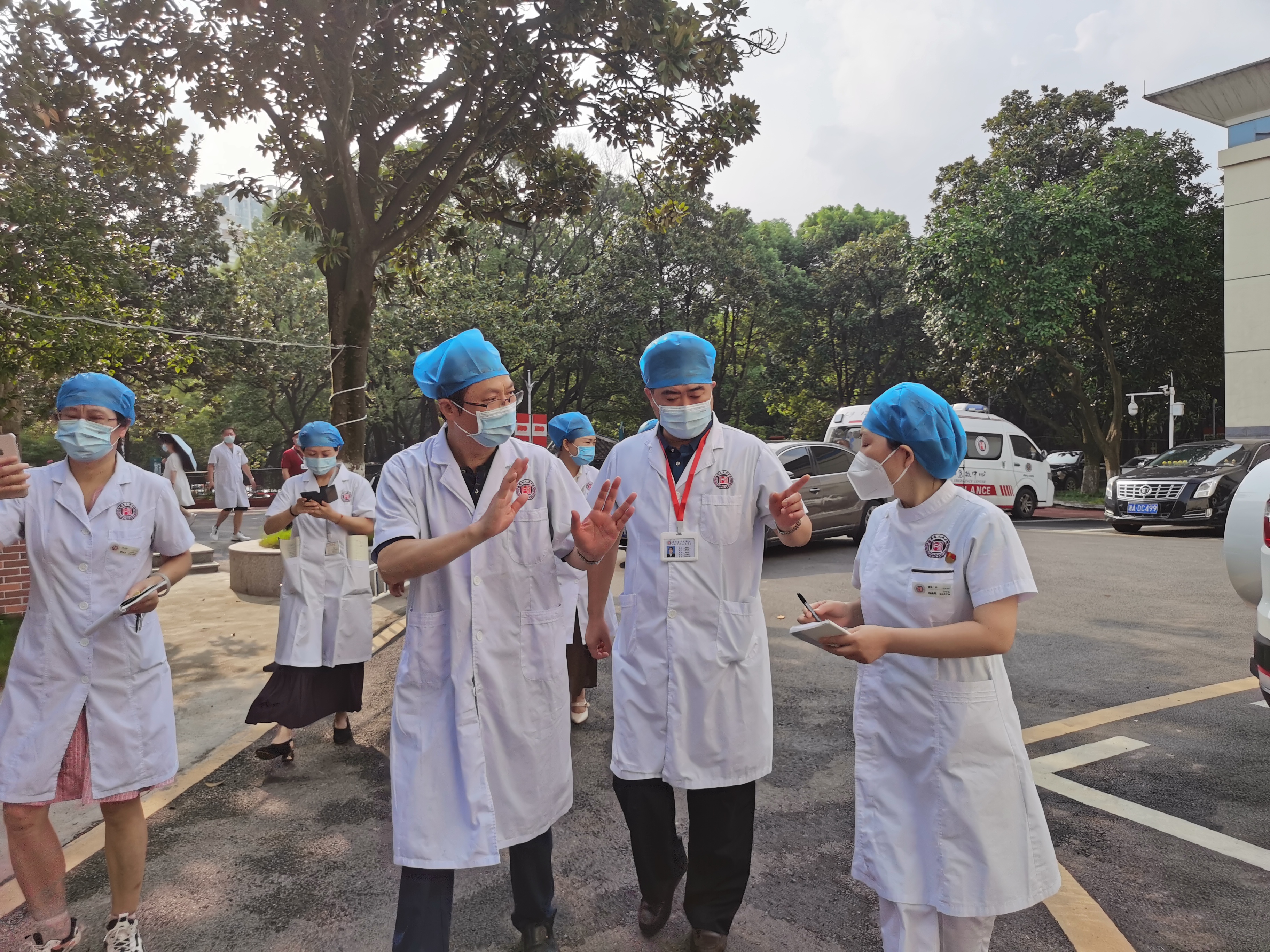 党委书记唐建明、副院长周绍明带队在马王堆院区,就门口接诊、预检分诊、黄码红码人员分诊、发热病房的流程规范和院感防控情况进行实地督查,现场解决问题。唐建明书记叮嘱大家要强化责任落实,确保防控要求落实到位,全力做好疫情防控工作。