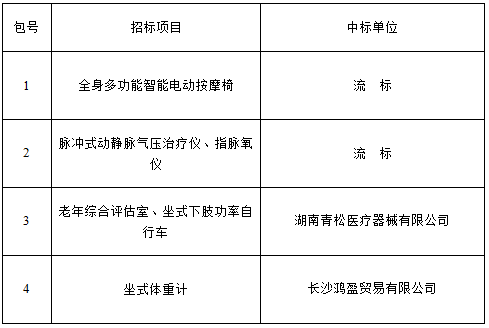 捷克论坛 (湖南师范大学附属第一医院)全身多功能智能电动按摩椅等医疗设备采购项目招标结果公示
