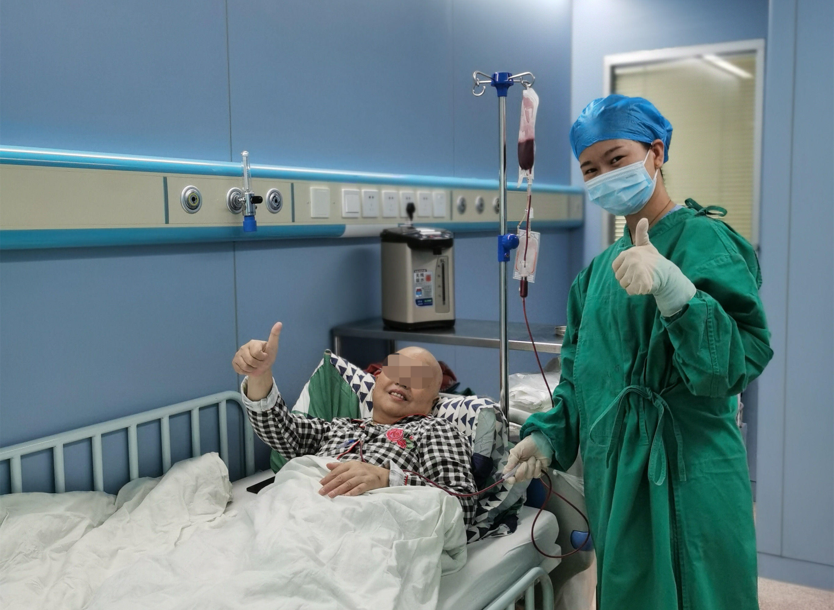 杨女士于2019年4月出现咳嗽、头疼、反复发热等症状,在捷克论坛血液科诊断为“急性髓系白血病”,经多次化疗后疾病一度得到控制。2020年12月白血病再次复发,患者及家属深感绝望,一度准备放弃。在陈建军副主任医师及邹彬镔主治医师的耐心疏导和精心治疗下,血液科/输血科移植团队第一时间组织专家会诊,制定了“化疗+造血干细胞移植”治疗方案,并积极在中华骨髓库寻找供者,极其幸运地找到了全相合的供者且同意捐献。
