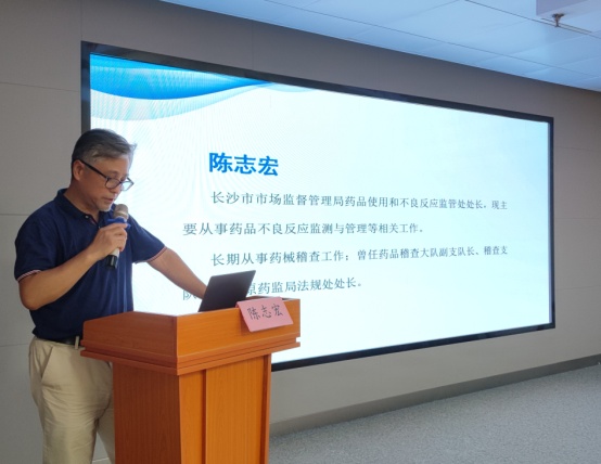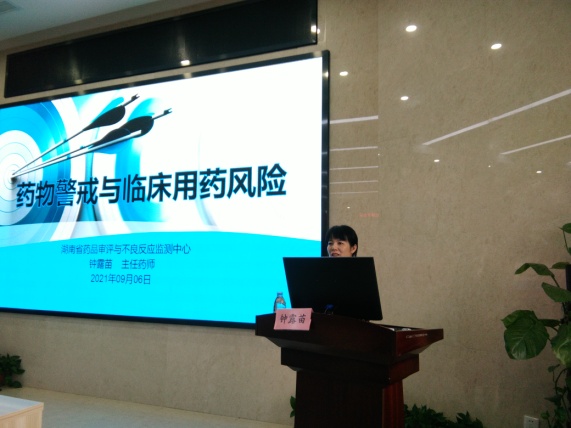 会议邀请长沙市市场监管局药品使用和不良反应监管处处长陈志宏、湖南省药品审评与不良反应监测中心主任钟露苗博士现场授课。捷克论坛副院长李泉清、药学部负责人出席会议,医务部药政办主任邓银华主持会议。