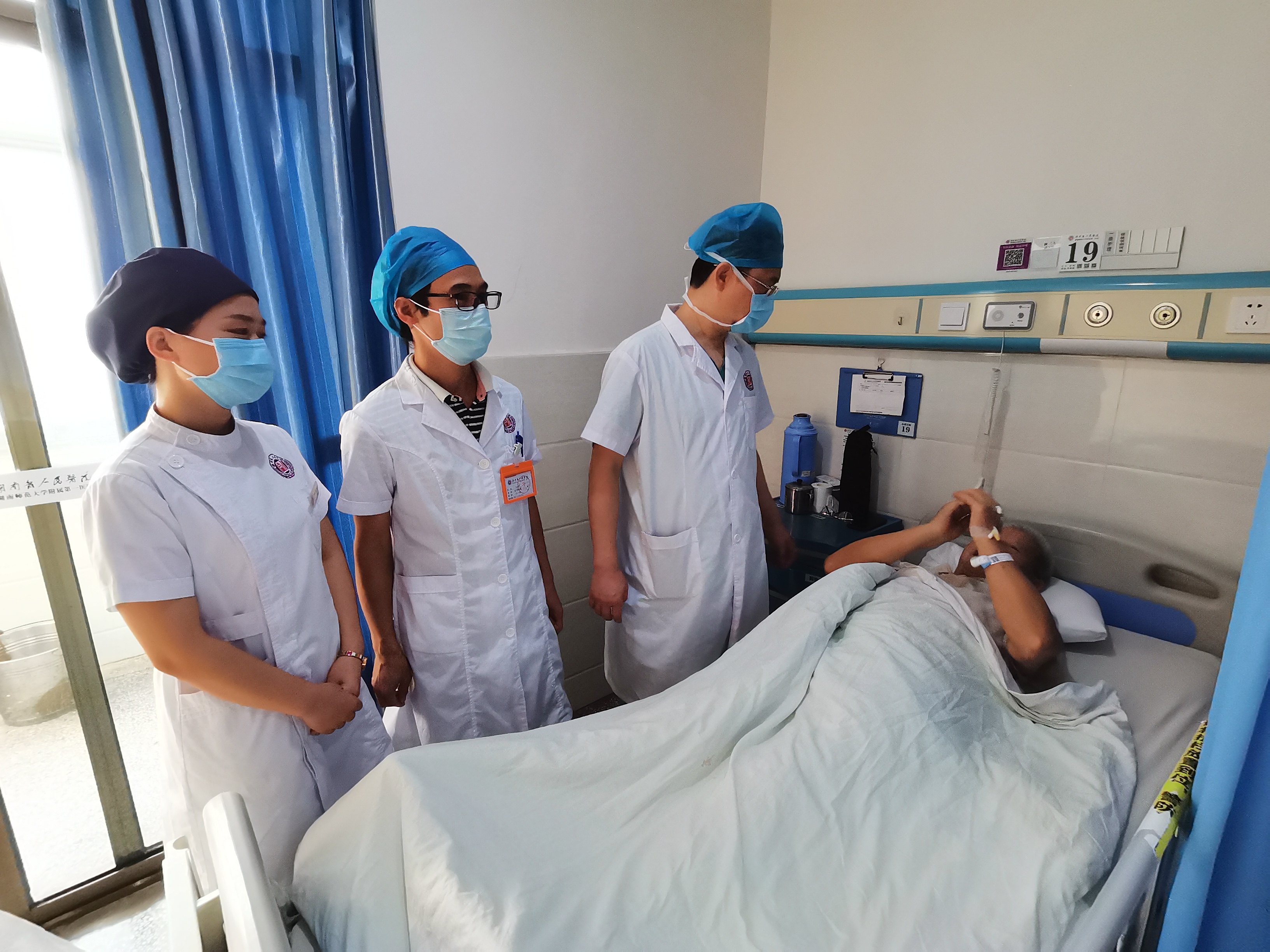 术后潘宏伟主任查房,患者拱手表示感谢
