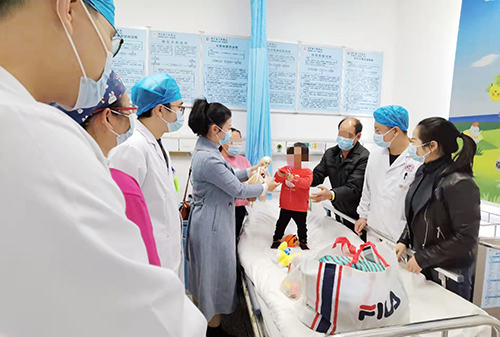 泌尿三科为灵灵减免上万元医疗费,段燚星主任和高海华护士长等医护人员还送来玩具、零食等。