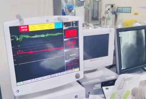 8时5分,手术开始;8时12分,造影结果显示:右冠状动脉急性闭塞。如不及时疏通,患者的生命将无法挽回。然而,就在手术进行到一半时,患者突然出现频繁室颤,血压持续下降至41/33 mmHg,心跳一度骤停!