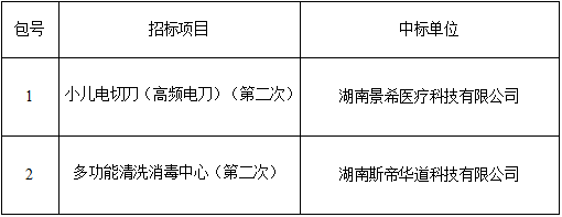 捷克论坛 (湖南师范大学附属第一医院)小儿电切刀(高频电刀)(第二次)等医疗设备采购项目招标结果公示