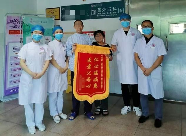 最后在医患共同努力下,老爷子恢复迅速,出院前女婿特意为所有参与救治的医护人员定制了锦旗,精神奕奕的爷爷和奶奶一起为医护们送上了锦旗。(普外五科 吴慧)