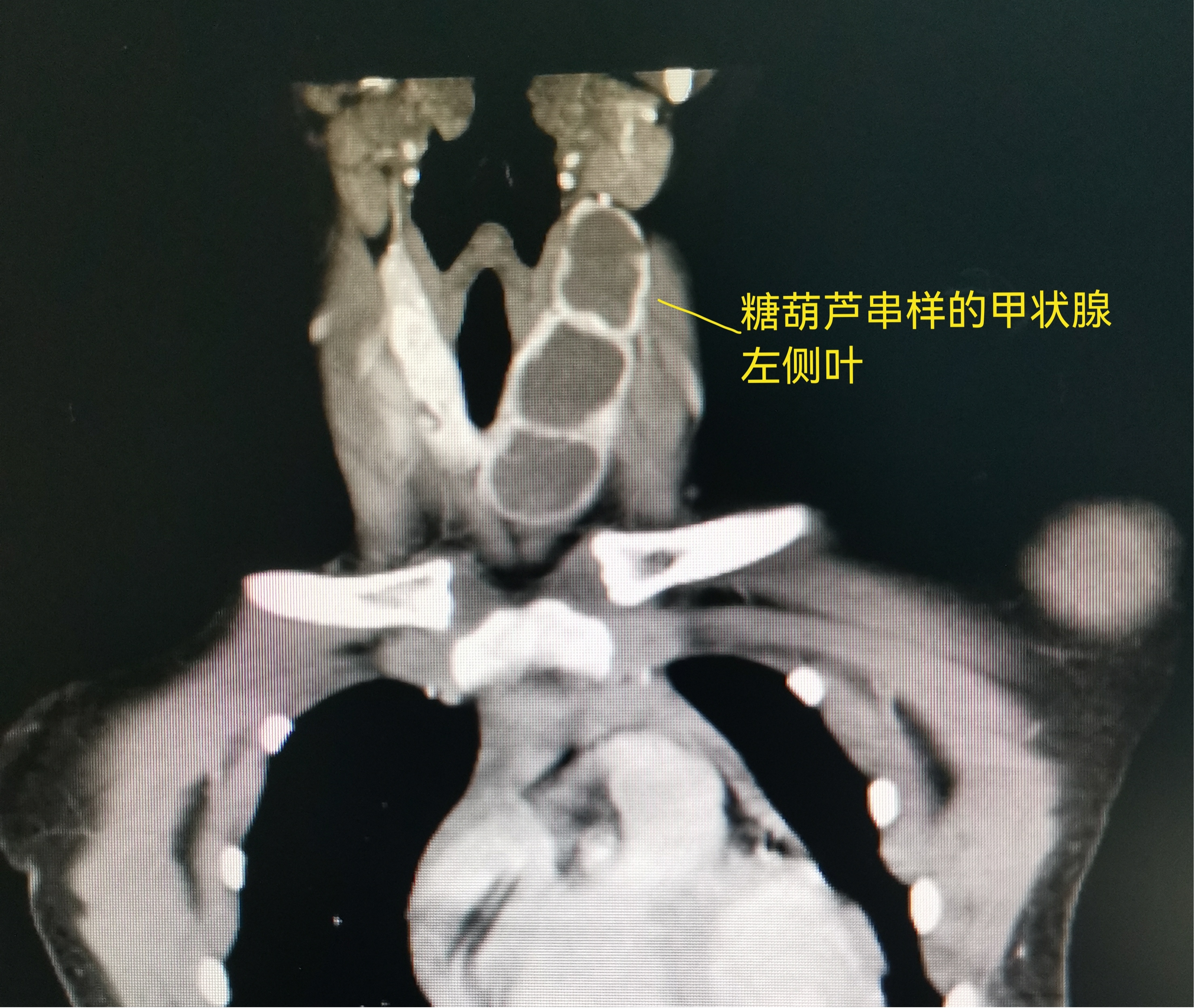 科室主任王慧玲及科室特聘专家张超杰主任在知道轩轩妈妈的顾虑后,对小轩的情况进行了讨论,CT结果显示小轩的甲状腺肿物比较大,而且呈糖葫芦串样,从甲状腺上极逐个排列直至甲状腺下极,上极的位置比较高,靠近下颌下腺,手术是肯定要做的,如果常规开放手术切除,做小切口,会因为上极位置高,容易损伤周围的血管神经,如果做大切口,颈部的疤痕会很明显,随着生长发育,疤痕牵扯,有可能会影响颈部的活动;选择腔镜,切口可以隐藏,但是对于主刀医生来说,难度会大很多。经过张超杰主任、王慧玲主任联合手术室及麻醉科的专家反复多次研究、探讨,最后为小轩制定了腔镜手术的方案。