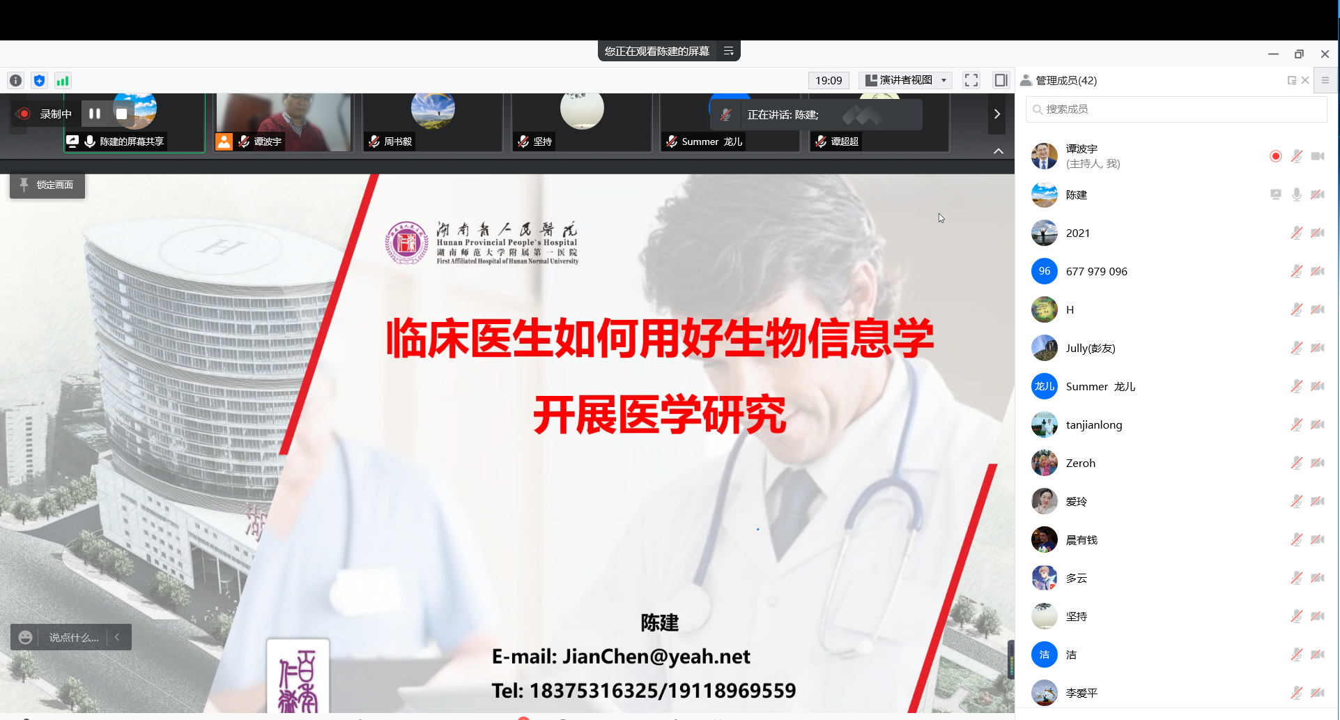 本次培训得到了与会90多名同事及在读研究生的一致好评。在读的研究生们踊跃提出了自学生物信息学过程中遇到的问题,请教入门经验。青年学术委员会会长检验科谭超超博士、生物信息学专委会主委药剂科谭波宇分别进行了答疑,线上交流气氛十分活跃,反响热烈。(药剂科 谭波宇)
