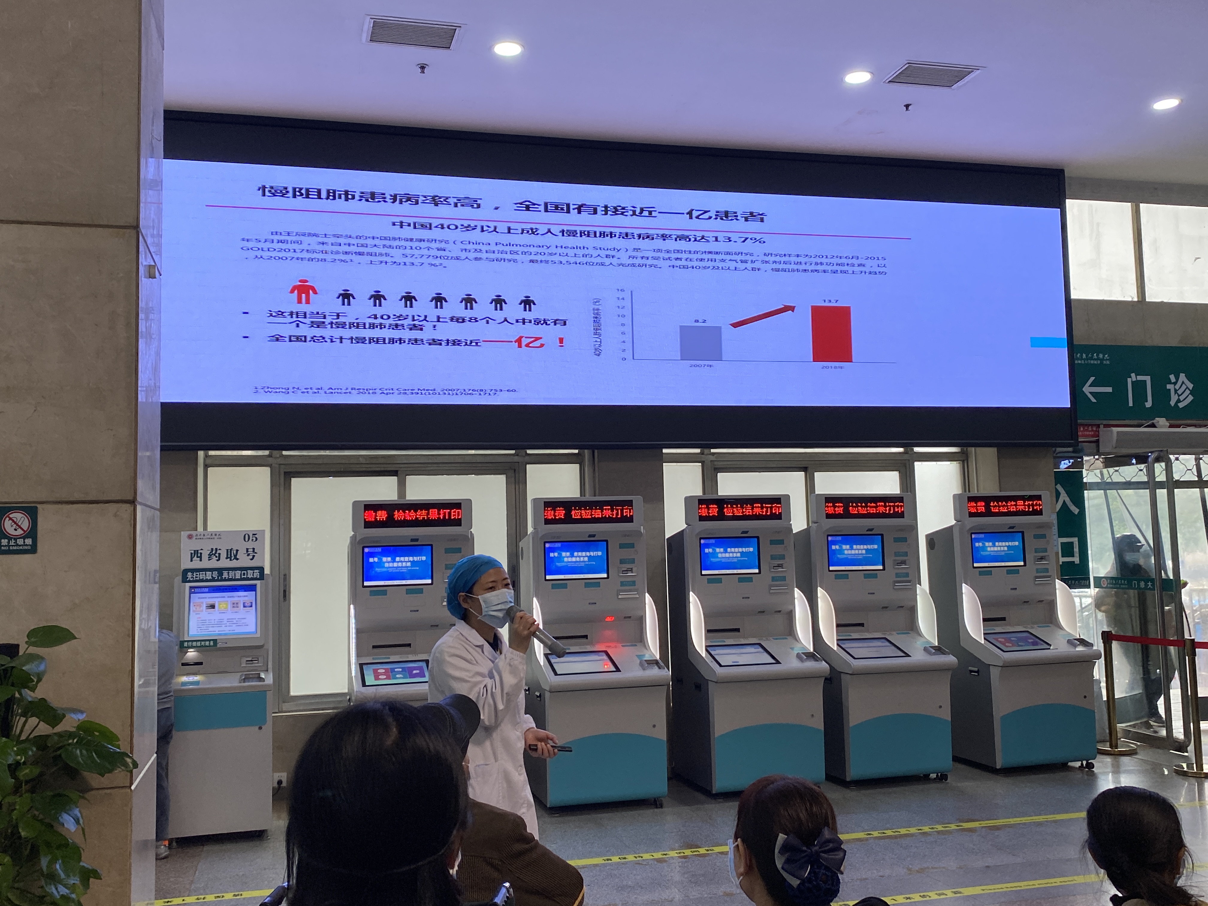 为了让患者及家属全面了解慢阻肺等相关疾病的知识,认识到肺康复的重要性,使更多患者得到规范有效的肺康复治疗,提高生活质量,捷克论坛 呼吸一科在门诊大厅开展了“世界慢阻肺日——认识肺康复”的宣教活动。