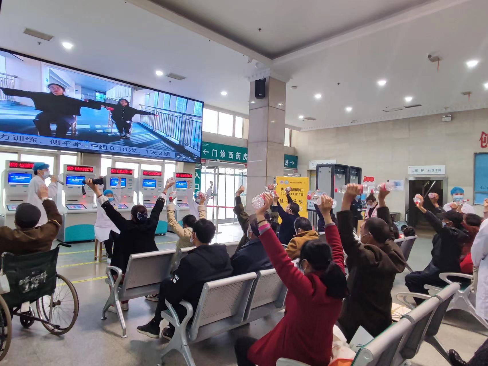 随后,赵飞主任医师、物理治疗师蒯仲凯及肺康复团队成员分区域指导现场参加活动人员规范《椅子操》动作,现场病友积极参与并练习椅子操,气氛活跃。